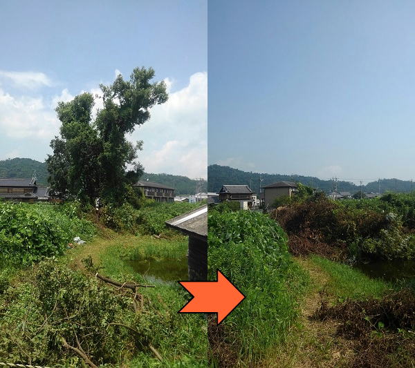 既に設置されている太陽光パネルへの日差しを遮っている樹木の伐採を致しました。
